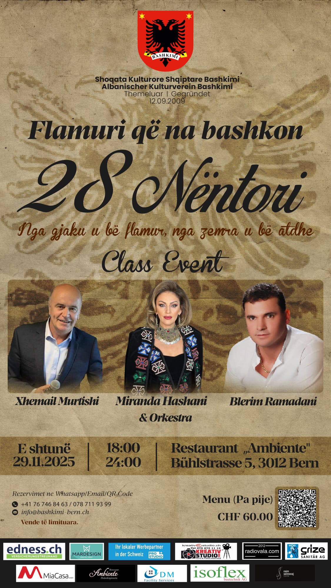 Të nderuar/a bashkëkombas/e!Shoqata Kulturore Shqiptare Bashkimi ju fton në festën e madhe kombëtare28 Nëntori, Dita e Flamurit.Po në këtë fundëvit Shoqata Kulturore Shqiptare Bashkimi, kremton 15 vjetorin e themelit të saj.Për pjesën artistike do të argëtojnë këngëtarë-e dhe instrumentalist.Xhemail Murtishi, Sead Rexhepi, Blerim Ramadani, Albana Zela, Esat Selimi, Shkendim Kaliqi dhe Zuki.Adresa:Kulturzentrum TellBernstrasse 1013072 OstermundigenE […]